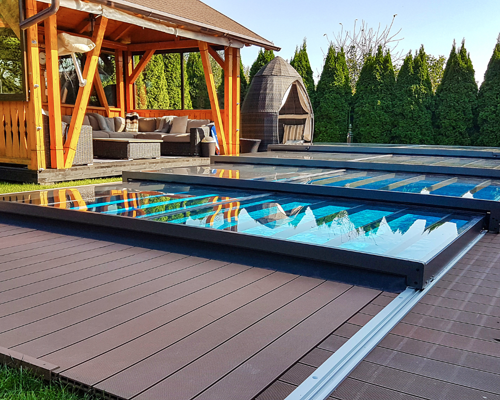 Genießen Sie das Schwimmen im Freien, ohne sich Sorgen über die Witterung machen zu müssen. Unsere Poolhallenüberdachungen bieten den perfekten Schutz vor Regen, Wind und Sonne, damit Sie das ganze Jahr über den Pool nutzen können. Wir bieten eine breite Palette an Größen und Designs, um sicherzustellen, dass Ihre Überdachung perfekt zu Ihrem Garten und Haus passt.